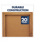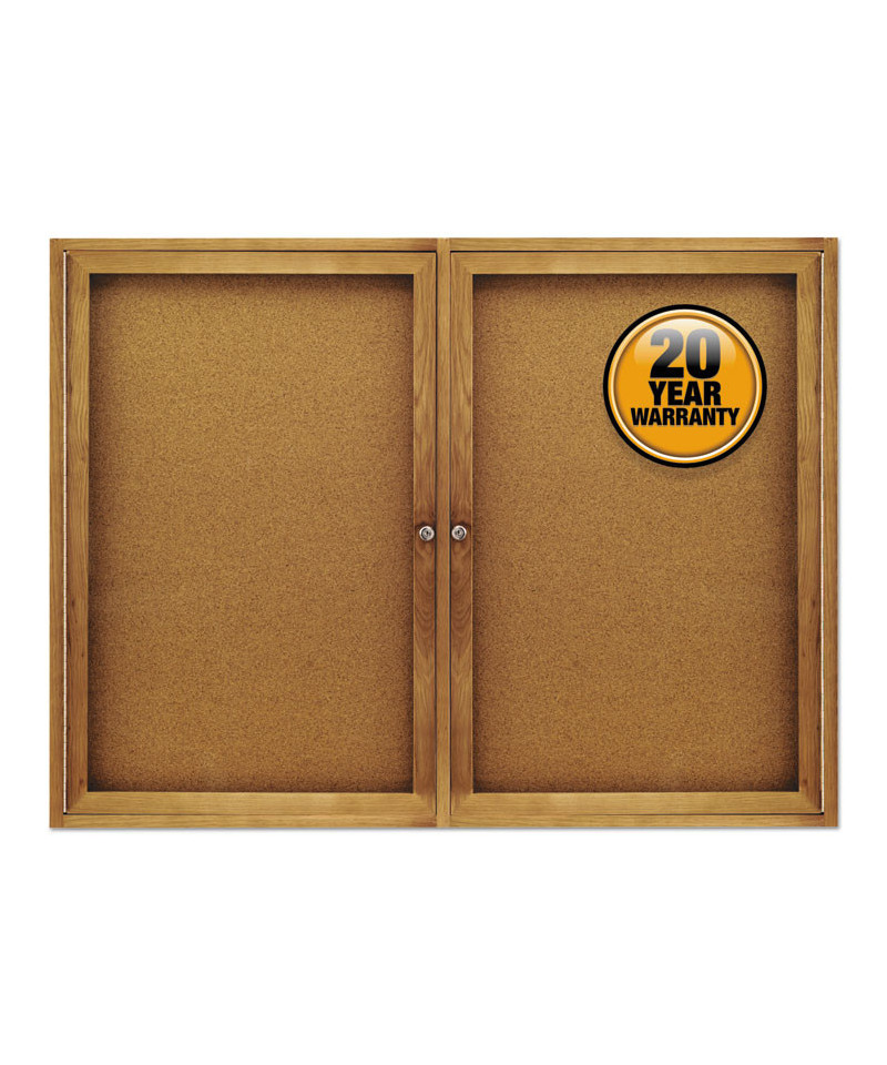 Communicate clearly and securely with Quartet Enclosed Indoor Cork Bulletin Boards. Minimize the risk of damage to important documents. Clear, acrylic windows ensure visibility for your message while locking doors secure documents in place. Information is easy to update and change. Thick self-healing natural cork holds push pins tightly and provides an excellent, resilient tacking surface. Each board has a dense fiberboard backing, sealed to reduce moisture absorption and resist warping. Full-length hinges. Ideal for indoor use. Available in a wide variety of frame finishes, designed to complement any office interior. Choose from one, two and three door models. Includes one key per lock.