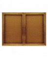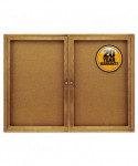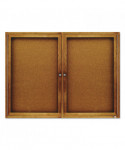 Enclosed Indoor Cork Bulletin Board with Two Hinged Doors, 48" x 36", Tan Surface, Oak Finished Fiberboard (MDF) Frame