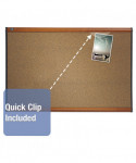 Highly durable colored cork bulletin board backed by high-density fiberboard secures documents with push pins. Delivers quality performance when communication and collaboration is needed in high-profile, frequent-use work environments, personal offices and conference rooms. Self-healing surface eliminates unsightly pin holes. High-density backing for maximum pin-holding power, ensuring documents stay securely posted. Fasten photos or important documents without holes using included Quartet® Quick Clips. Patented Easy Mount hanging system secures board to wall in multiple places, guaranteeing easy and accurate installation. Modern frame blends seamlessly into contemporary interiors.