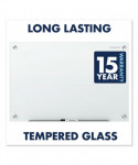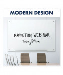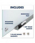 Ultra-modern, tempered-glass-surface whiteboard delivers high-quality performance. Durable, tempered-glass provides a smooth writing platform that erases cleanly after every use, preventing ghosting and staining. Write with any dry-erase marker. Less porous and absorbent than standard whiteboards, this board will maintain its impressive appearance for years to come, even under frequent-use conditions. Frameless board is a good fit for any contemporary office. Hardware is included for simple and secure wall mounting. Occasional cleaning is recommended for best performance.