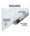 Ultra-modern, tempered-glass, magnetic-surface whiteboard delivers high-quality performance. Highly durable, the white-finished glass provides a smooth writing platform that erases cleanly after every use, to prevent ghosting and staining. Less porous and absorbent than standard whiteboards, this board will maintain its impressive appearance for years to come, even under frequent use. The frameless, one-month design is a good fit for any office. Write down appointments or post notes using high-power glass board magnets. Dry-erase marker, magnets and mounting hardware is included. Simple and secure wall mounting. Occasional cleaning is recommended for best performance.