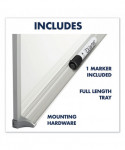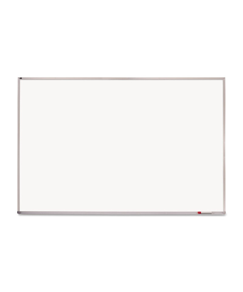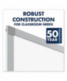 Ultra-durable, ultra-smooth whiteboard with porcelain surface will not scratch, dent, stain or ghost. Delivers superior performance in heavy-use active learning environments. Versatile steel-backed magnetic surface doubles as bulletin board. Easy-to-clean writing surface requires minimal use of Quartet® cleaning solutions. Hanging system and kit included, guaranteeing easy and accurate installation. Satin-finish wraparound frame construction. Modern, anodized aluminum frame complements contemporary classroom environments. Includes full-length marker rail.