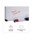 Stylish, durable, high-quality, wall-mountable dry erase board is an indispensable office addition that's perfect for occasional use. Melamine surface accepts all dry-erase markers and wipes clean with cloth, eraser, or dry erase wipes. Modern, contoured aluminum frame features attractive, protective, black, rounded, plastic corners. Extra-wide marker/eraser tray. May be mounted vertically or horizontally. Dry erase markers and erasers sold separately.