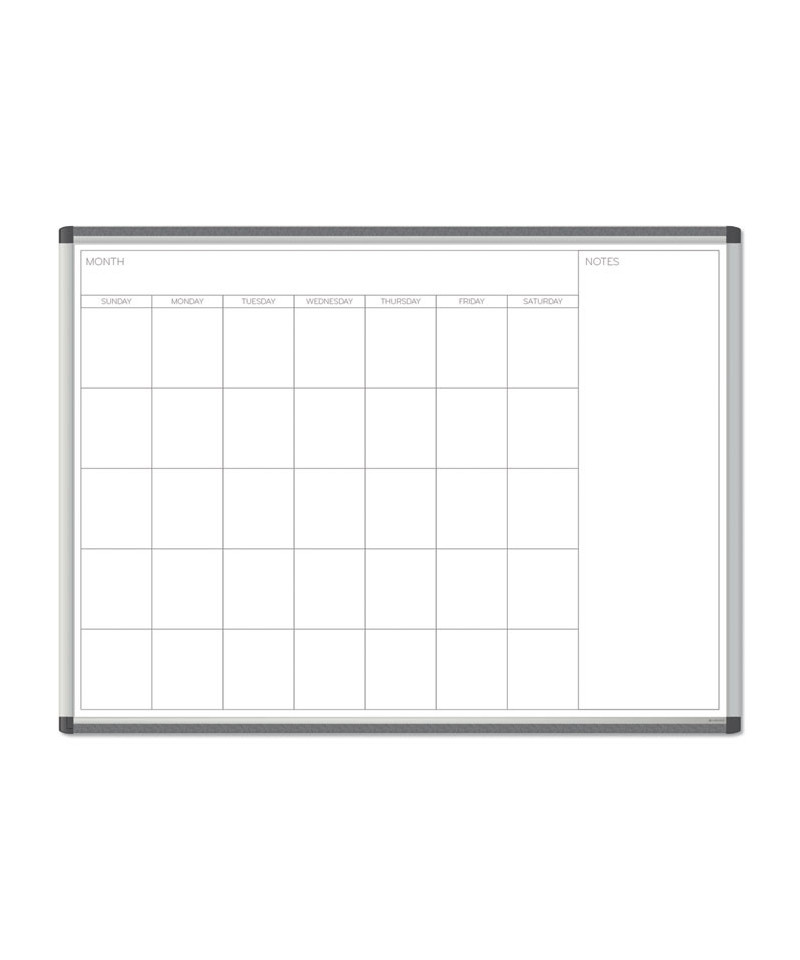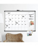 Silver aluminum PINIT frame magnetic dry erase calendar board is a perfect and functional solution for the frequent usage areas of your office, school classroom, home or any commercial space. Although all dry erase markers work well with this board, the U Brands dry erase markers provide the ultimate writing and eras-ability experience. Magnetic painted steel writing surface will require minimal ongoing cleaning care to ensure the best performance and resist ink staining and ghosting. Monthly view enables you to keep track of your hectic schedule. Simply use any dry erase board spray or wet dry erase board wipes after continuous use to clean the writing surface. Magnetic writing surface functions as a bulletin board as well; simply use any board magnets to pin all of your notes, messages, pictures, memos, calendars, menus, reminders and more. You may also attach all U Brands magnetic board markers and accessories (sold separately) to the board surface without using the marker tray. Strong and thick insulation underneath the dry erase surface, combined with the aluminum frame provides a firm and rigid construction. Whiteboard has a universal mounting system, as it can be hung horizontally.