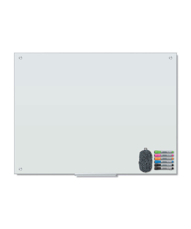 Frosted white, magnetic glass dry erase board is the perfect, functional solution for frequent and heavy-use areas in offices, classrooms and commercial spaces. Its clean, contemporary lines add a touch of style to your space, too. Modern, frameless design enables you to hang multiple glass boards adjacent to one another to expand your writing surface to fit your needs. Continuously outperforming all melamine and painted steel alternatives, this board's premium, stain- and ghost-proof tempered glass magnetic writing surface erases easily with a simple board eraser (one U Brands Microfiber Board Eraser included). After heavy, continuous use, simply use any dry-erase wet wipe or spray to make the surface look new again (sprays and wipes sold separately). Ferrous magnetic surface accommodates high-energy rare earth magnets (one U Brands High-Energy Rare Earth Magnet included). And though all dry erase and glass-board markers are compatible with the board's surface, U Brands Liquid Glass Markers provide the ultimate writing and erasability experience (six U Brands Liquid Glass Markers included). Universal mounting system allows the board to be hung vertically or horizontally, and all wall hanging hardware is hidden under the mounting bolts to provide a sleek, modern appearance. Packaged with extra supportive corrugate material for added safety during shipping and handling (corrugated material is recyclable).