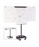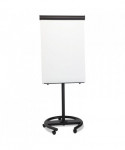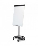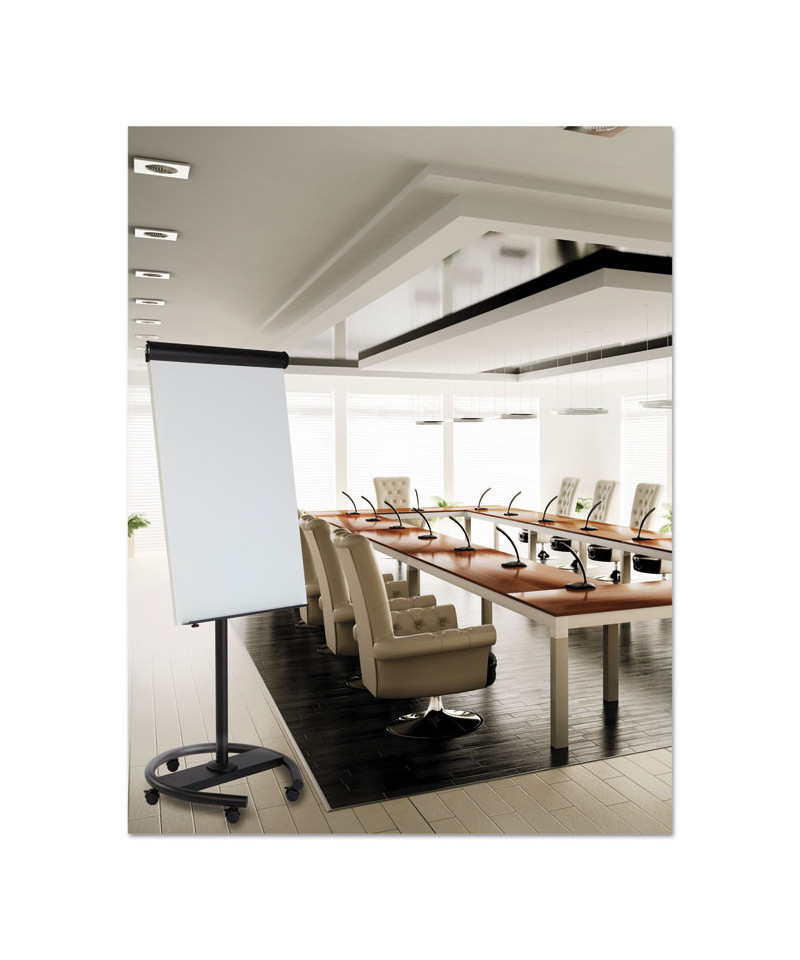 Mobile steel easel features five easy-rolling casters that lock for stability. The magnetic Gold Ultra™ lacquered steel board surface wipes clean and resists staining. Pad retainer with adjustable easel-pad hooks allows you to use any size pad, and a full-length pen tray provides added convenience. The board also tilts for comfort and can be rotated until the surface is completely flat, making it possible for you to use it as a table or horizontal dry erase surface. The overall height is also adjustable from 60" to 80". Versatile and stylish, this easel will become a favorite for projects, presentations and planning.