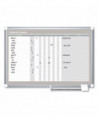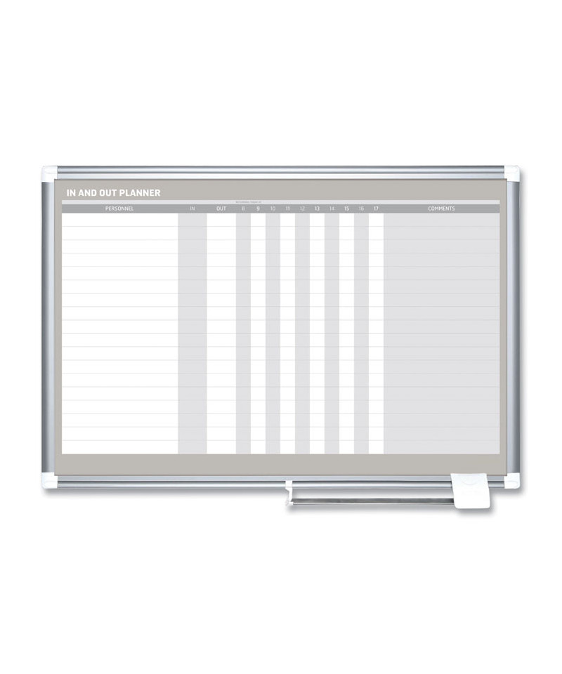 In & Out board features rows for employees or visitors and is perfect for displaying staff schedules. The Magnetic Gold Ultra™ dry erase lacquered steel surface is recommended for frequent use. The Sliding aluminum pen tray keeps pens and magnetic accessories where you want them. Aluminum frame features the four-corner system for easy mounting.