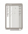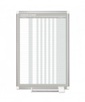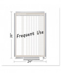 In & Out board features rows for employees or visitors and is perfect for displaying staff schedules. The Magnetic Gold Ultra™ dry erase lacquered steel surface is recommended for frequent use. The Sliding aluminum pen tray keeps pens and magnetic accessories where you want them. Aluminum frame features the four-corner system for easy mounting.