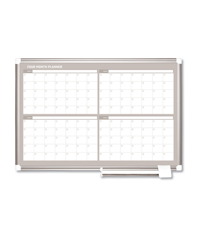 Magnetic Dry Erase Calendar Board, Four-Month Planning/Scheduling, 36" x 24", White Surface, Satin Aluminum Frame