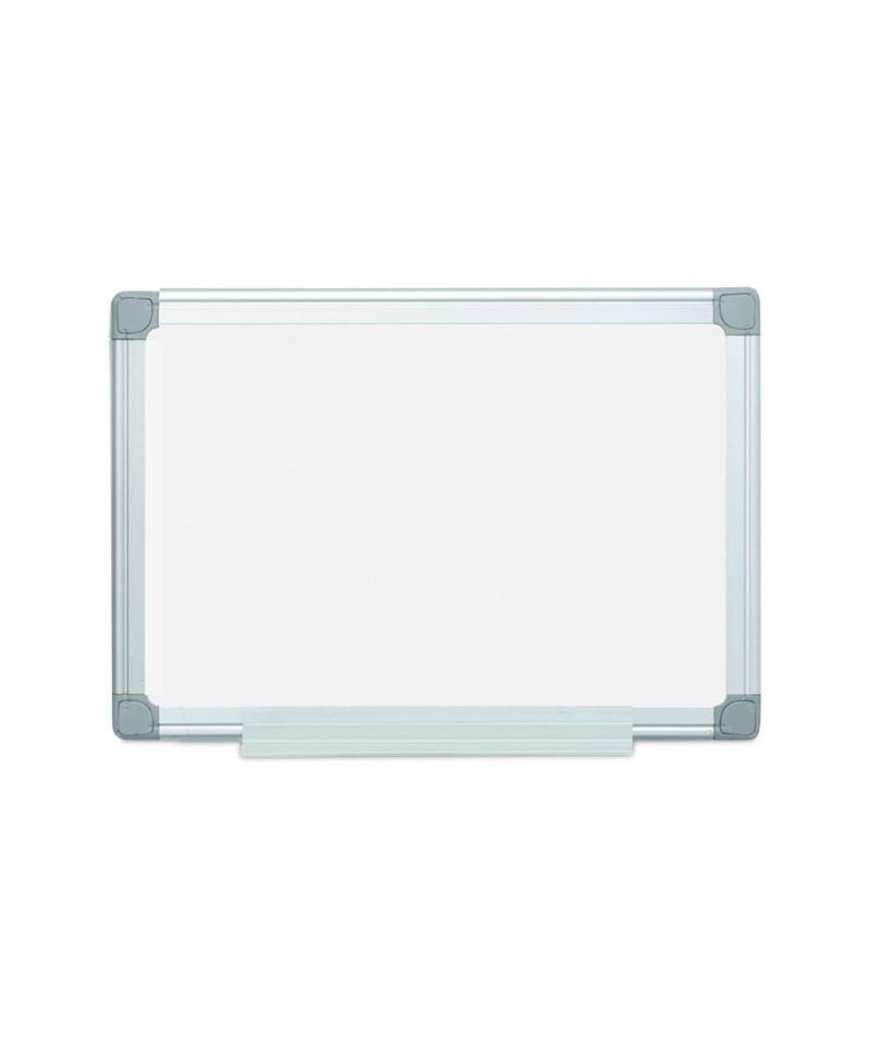 MasterVision® Earth Silver Easy Clean Dry Erase Boards are a solution that combine superior writing and cleaning performance with professional Maya frame quality. Made from recycled and recyclable materials, these non-magnetic boards are double-sided to provide twice the life of standard melamine whiteboards. Both board surfaces are suitable for moderate use and can easily be flipped when necessary. Four-corner system allows for both vertical and horizontal mounting, offering versatility when reconfiguring an office and where wall space might be limited. An adjustable accessory rail offers a convenient way to keep your markers within easy reach. Sturdy, heavy-gauge aluminum frame.