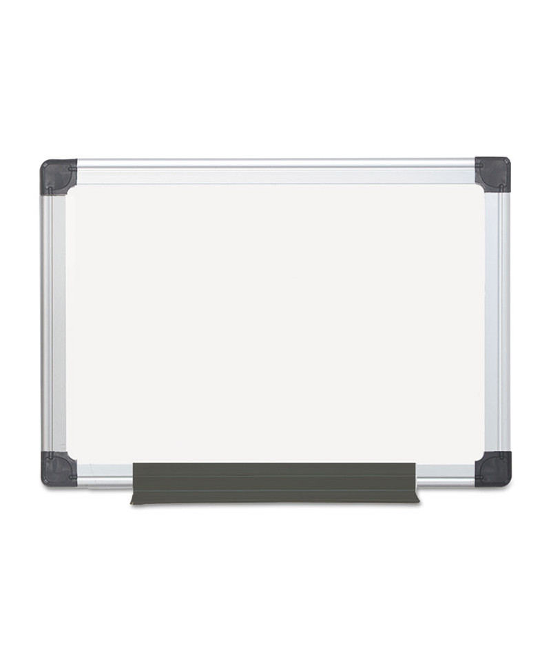 The Maya Non-Magnetic Dry Erase Board is an economic solution that combines great writing and cleaning performance with professional Maya frame quality. Designed for commercial applications, the Maya non-magnetic board is suitable for moderate use. This versatile board is double-sided allowing it to be flipped over for twice the life, making it an incredibly good value. Framed in sturdy heavy gauge aluminum, it has an easy 4-corner mounting system that can be positioned either vertically or horizontally, offering versatility when reconfiguring an office or where wall space is limited. The adjustable pen tray offers a convenient way to keep your writing utensils within quick reach.