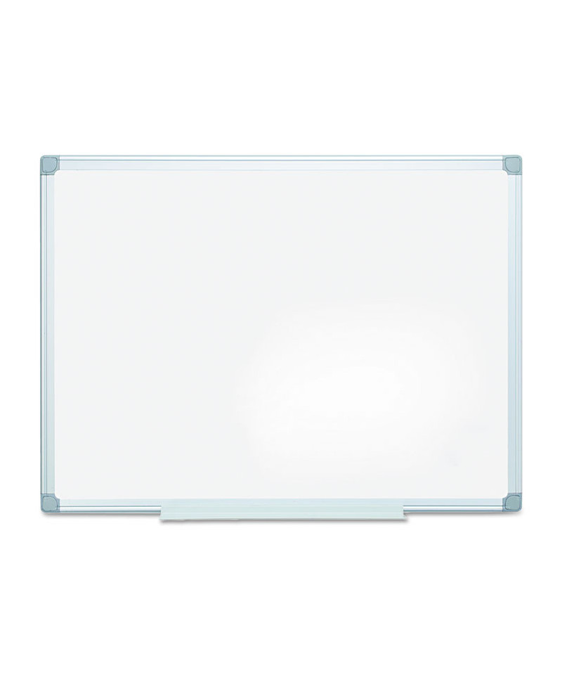 MasterVision® Earth Silver Easy Clean Dry Erase Boards are a solution that combine superior writing and cleaning performance with professional Maya frame quality. Made from recycled and recyclable materials, these non-magnetic boards are double-sided to provide twice the life of standard melamine whiteboards. Both board surfaces are suitable for moderate use and can easily be flipped when necessary. Four-corner system allows for both vertical and horizontal mounting, offering versatility when reconfiguring an office and where wall space might be limited. An adjustable accessory rail offers a convenient way to keep your markers within easy reach. Sturdy, heavy-gauge aluminum frame.