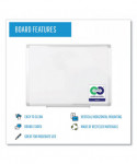 MasterVision® Earth Silver Easy Clean Dry Erase Boards are a solution that combine superior writing and cleaning performance with professional Maya frame quality. Made from recycled and recyclable materials, these non-magnetic boards are double-sided to provide twice the life of standard melamine whiteboards. Both board surfaces are suitable for moderate use and can easily be flipped when necessary. Four-corner system allows for both vertical and horizontal mounting, offering versatility when reconfiguring an office and where wall space might be limited. An adjustable accessory rail offers a convenient way to keep your markers within easy reach. Sturdy, heavy-gauge aluminum frame.