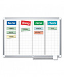 Organization is vital for the success of every business or enterprise. Planning boards are excellent tools that allow you to keep planning and tracking on time. Keeping important tasks on display, organizing work-groups or just planning ahead is practical and easy. Pale gray grid lines help ensure easy alignment of text and magnetic accessories. Magnetic lacquered steel dry erase surface is suitable for frequent use and allows you to post notes and messages as well as write. Sturdy aluminum frame features a sliding pen tray and an easy four-corner mounting system. Includes mounting kit.