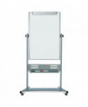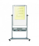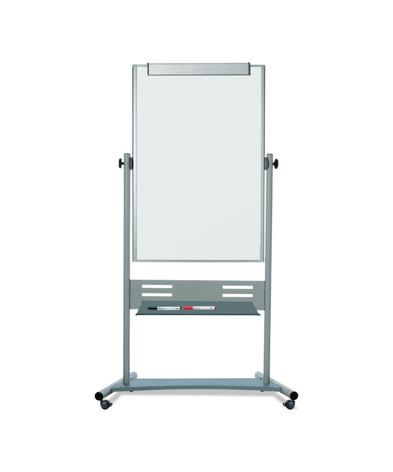 Revolving double-sided dry erase mobile presentation easel is heavy-duty and reversible. It features a Magnetic Gold Ultra™ lacquered steel surface on both sides. Extra-large repositionable steel pen tray can be positioned in several places. Tubular steel frame, support bars and easy glide locking castors make this one of the most stable large mobile easels in the marketplace. Durable and versatile, this easel is perfect for classrooms and all training environments. Mobile and practical to use, it helps ensure that you can adapt to any room and keep your audience's attention.