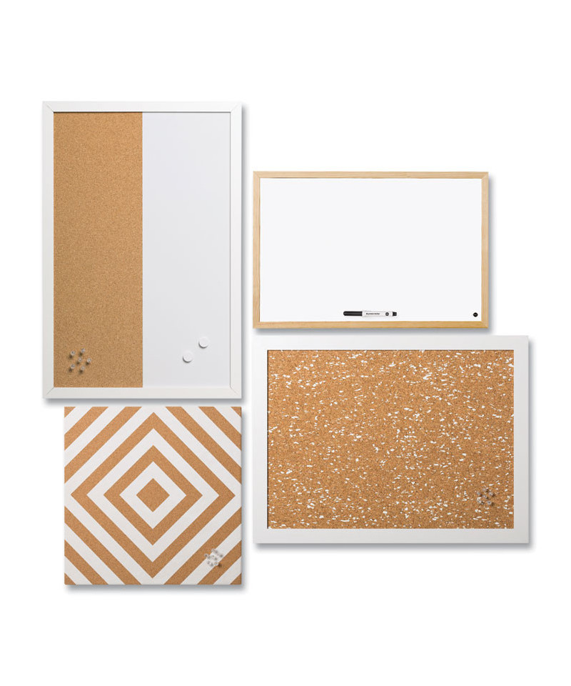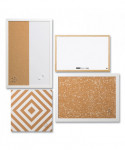 Neutrals Set-Includes one 18 x 24 natural/white checkered cork board, one 16 x 16 diamond-patterned natural/white cork board, one 24 x 16 white dry erase/natural cork bulletin combination board and one 16 x 12 white magnetic dry erase board.