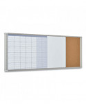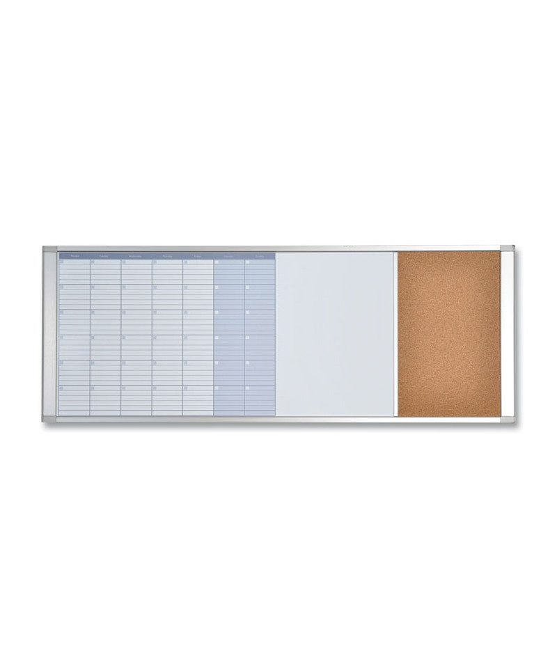 Cubicle workstation combo features a calendar, a white board and a cork board. The white board has a magnetic lacquered steel surface and an aluminum frame. Designed to fit in smaller spaces, MasterVision® personal home and office products can be used in any working context. Practical and adaptable, they're the starting point of all efficient planning and organization, boosting performance for both individuals and teams.