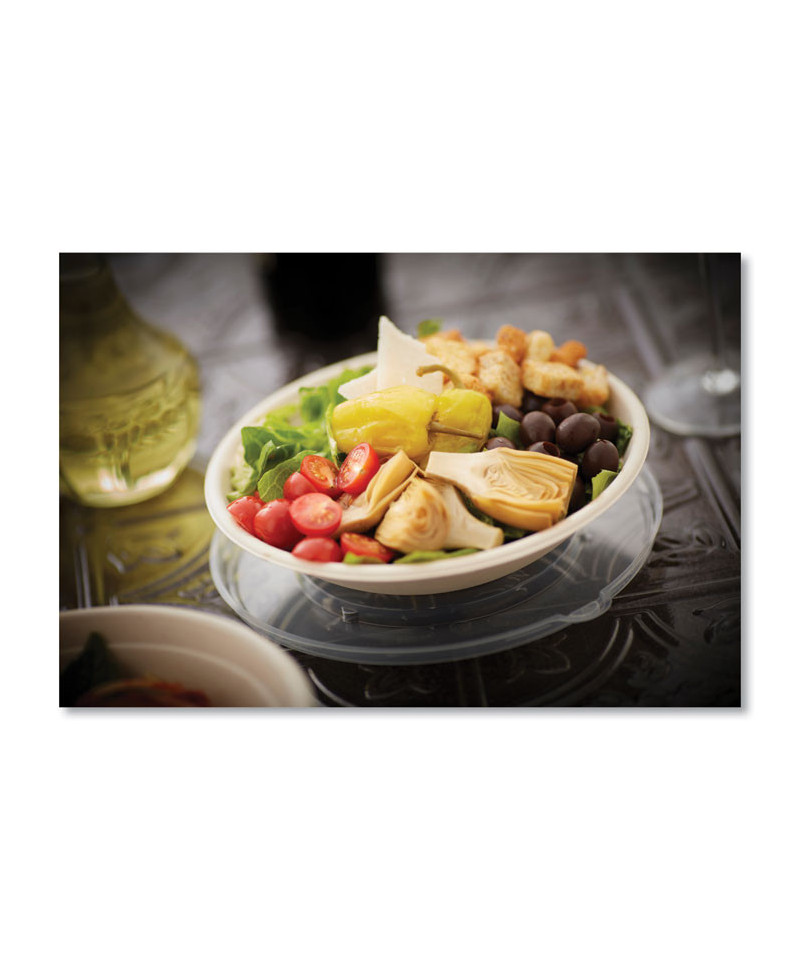 This dinnerware is the perfect renewable option for your business and customers. This fiber-blend bagasse dinnerware can help you meet your sustainability goals and keep operations running smoothly. Made of a blend of Bagasse and bamboo which are sustainable, annually renewable resources. Their durable design makes food assembly quick, easy and mess-free.