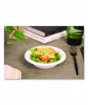 Sturdy, upscale dinnerware is made entirely from sugarcane fibers. Microwave and freezer safe. Durable, grease- and cut-resistant.