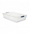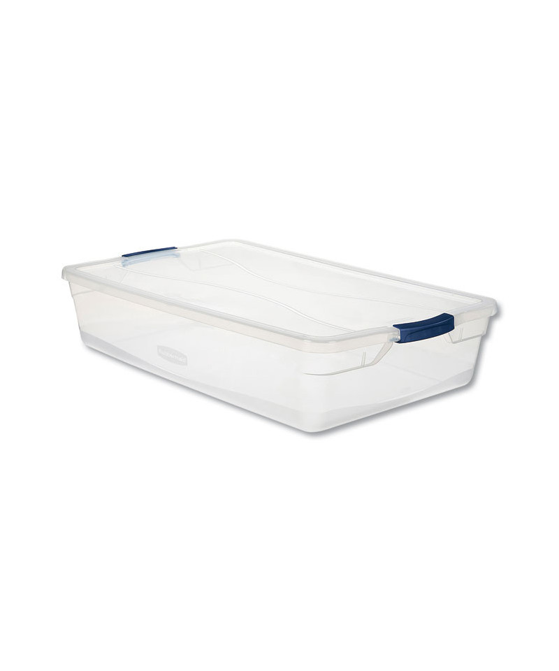 Durable plastic container with tight-fitting lid keeps material safe and organized. Recessed handles allow easy transport. Lay-flat latches simplify stacking.