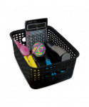 Perfect for storing a variety of office or household supplies. This sturdy plastic bin is easy to clean, features two handles for easy transportation and has a stylish design.