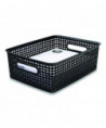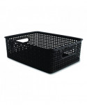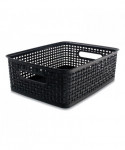 The perfect storage solution and balance of function and fashion, the plastic weave bin declutters any home or office environment. Constructed of sturdy black plastic, this bin can store pretty much anything. The classic black color will blend into any room.