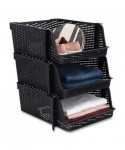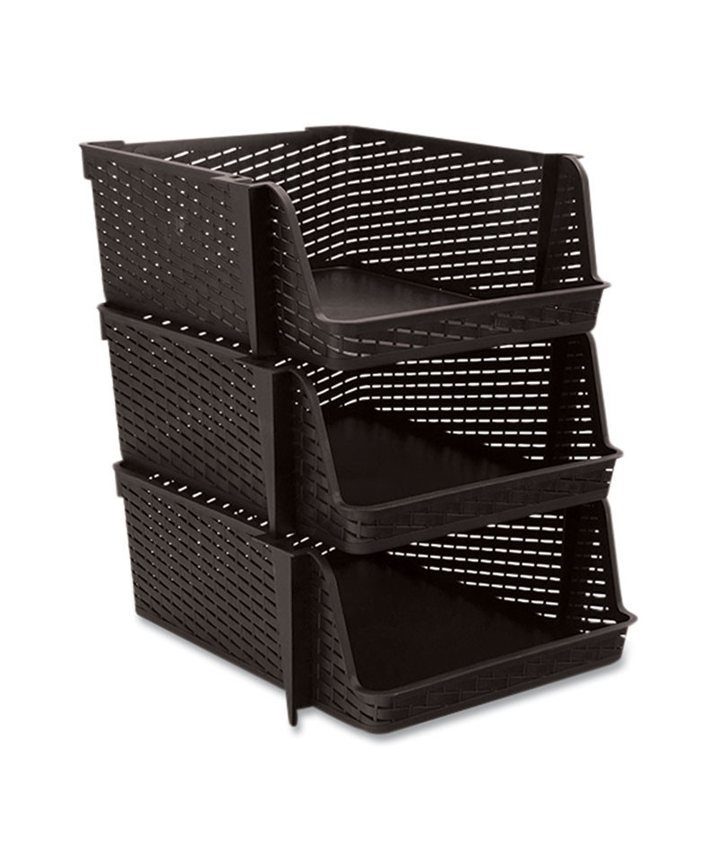 Sort, stack, and organize your clutter with this versatile three-pack of bins. Durable plastic weave bins are designed to give you a great amount of easy-to-access bin space for your ever-changing organizational needs. Perfect for a variety of storage applications such as desktop, paper, closet, pantry, laundry, crafts and more.