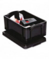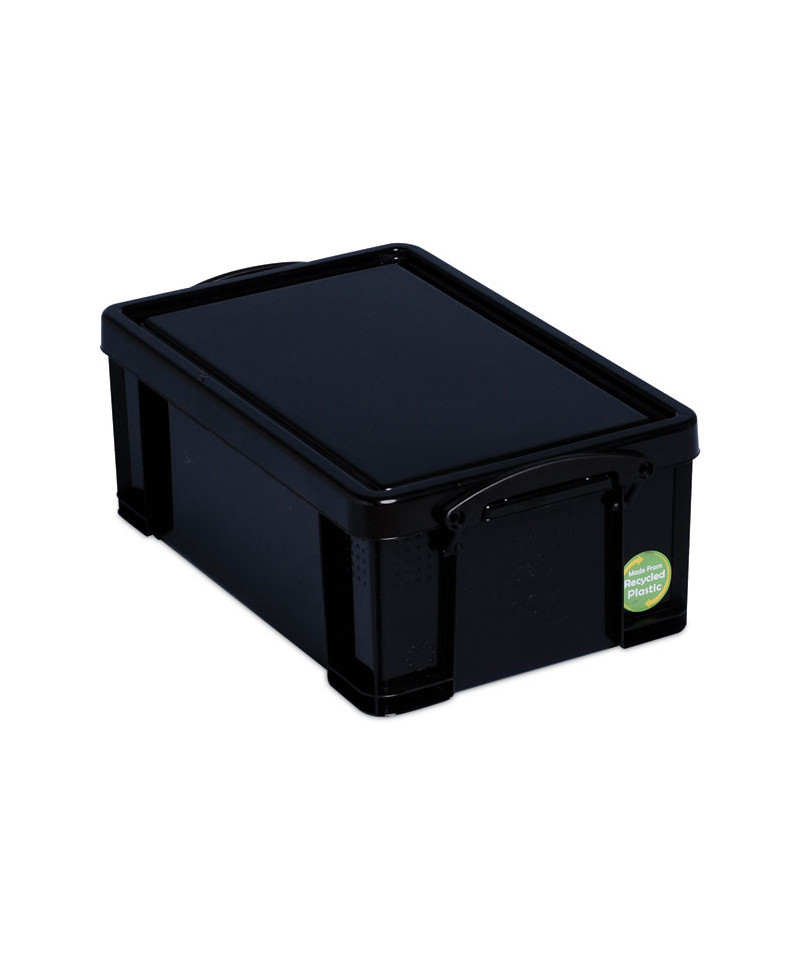 The Really Useful Box storage tote features handles with clip locks to secure the lid, offering convenient storage for your DVDs, CDs, documents, and utensils. The box is extremely durable and is made of 100% recycled plastic.