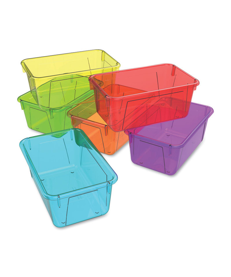 These small bins fit perfectly in classroom cubbies. They are also useful boxes for organizing your classroom. They are made of a drop-resistant plastic that prevents cracking. Perfect bin for shoes or even general storage.