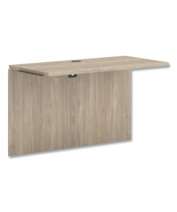 The non-handed bridge can be combined with a desk shell and a credenza shell to create a U-workstation. Scratch-, spill- and stain-resistant laminate stands up to heavy use. The full-height modesty panel adds privacy; unit can be installed with or without the modesty panel. Includes one 3" diameter work surface grommet for easy cord management. Ships in compact carton to conserve packaging and protect product in shipment; installs in minutes.