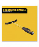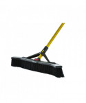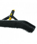 Angled sides capture more debris per stroke than standard push brooms. Polypropylene foam block resists cracking, splitting, warping and rotting. Bristle broom has a lightweight steel handle with supporting yoke, holds up to repeated use. Molded comfort handle grip reduces strain.