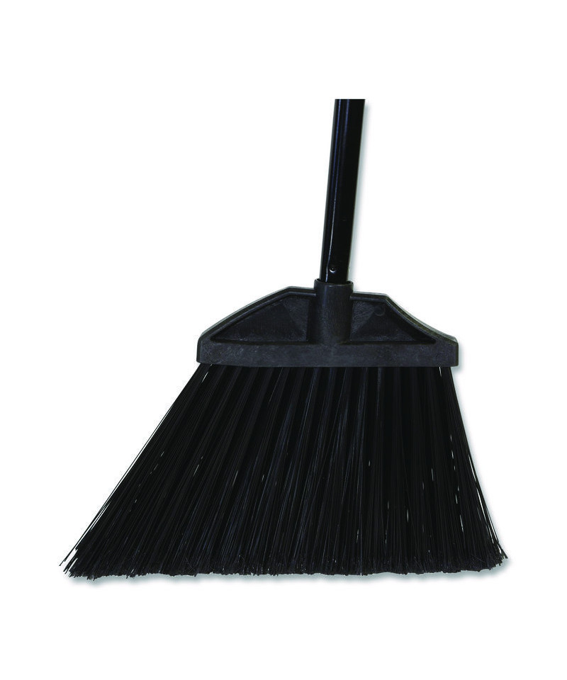 Equip your facility with this large, dependable angler broom. Large sweeping surface broom covers large areas at a time. Flagged-tip plastic bristle head and angled head design allow easy cleaning along baseboards, in corners. and under furniture. Durable steel handle and plastic angled shroud provide durability, smooth handling, and bristle protection. At 57" long, this broom gives excellent sweeping reach.
