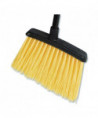 This broom features an aangled brush head with a flare edge that accesses corners, floor crevices and small areas between appliances. The long metal handle offers a stable grip and extended reach to cover more ground quicker. A threaded opening lets you remove and replace the handle as needed to extend or reduce reach. You can also save space by hanging the broom on walls behind doors or in closets with its built-in hanging hole.
