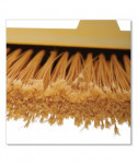 Big 13" sweeping surface with sturdy flagged-tip plastic bristles. Angled cut for sweeping corners, edges and under counters. Lacquered wood handle with plastic angled shroud.