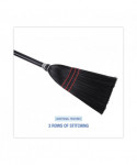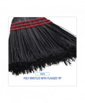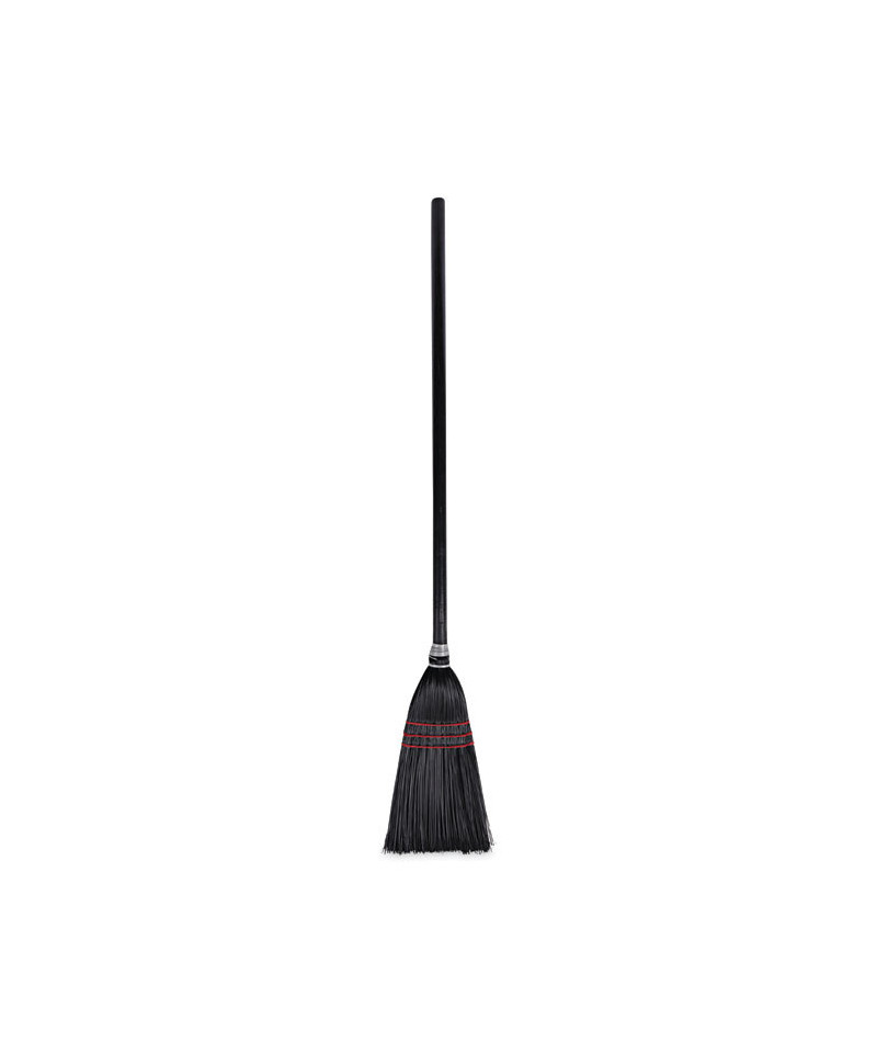 Convenient size janitorial or housekeeping broom for light-duty sweeping. Long-lasting poly bristles get into nooks and crannies while pushing dust and debris. Composed of a black, wooden handle with flagged-tip bristles. The three rows of stitching and metal wrapping provided strength and dependability. Lightweight and portable. Great for hotels, restaurants, lobbies, and household sweeping on a variety of floor types.