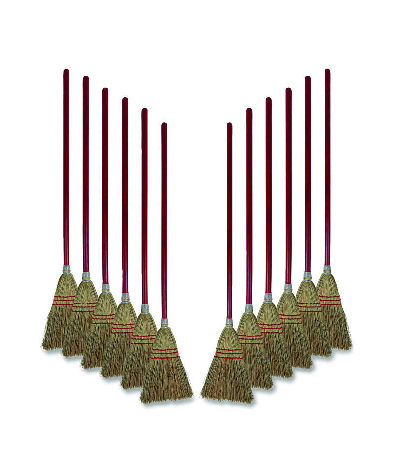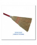 Economy and performance are hallmarks of this upright, corn fiber broom. Bound with double-stitched nylon cord for durability. Constructed with stiff, natural, corn fiber bristles that are tightly secured to the handle with a heavy, metal wire. Durable upright broom can tackle routine cleaning jobs and tucks away for easy storage with its shorter handle. An ideal, sturdy broom for sweeping concrete and other rough floor surfaces. Solid wood handle that's lacquered to prevent splintering and blistering. Three rows of stitching for lasting use.
