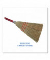 Economy and performance are hallmarks of this upright, corn fiber broom. Bound with double-stitched nylon cord for durability. Constructed with stiff, natural, corn fiber bristles that are tightly secured to the handle with a heavy, metal wire. Durable upright broom can tackle routine cleaning jobs and tucks away for easy storage with its shorter handle. An ideal, sturdy broom for sweeping concrete and other rough floor surfaces. Solid wood handle that's lacquered to prevent splintering and blistering. Three rows of stitching for lasting use.
