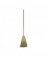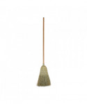 Resilient, strong, and even wearing warehouse utility broom. Composed of 100% corn broom to effectively push dirt and debris on hard and rough surfaces. Built with double-stitched nylon cord and four rows of stitching to keeps straw tightly in place with lasting durability. Wire-wrapped, lacquered wood handle for extended use. Natural color makes product fit in seamlessly in any environment.