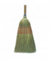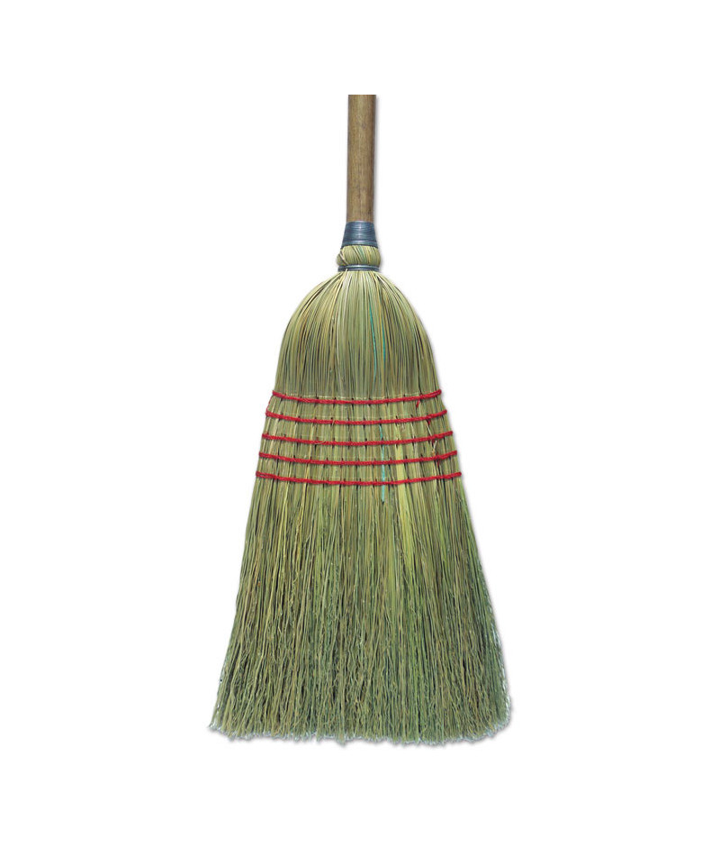 Natural colored, warehouse broom for general purpose sweeping. Constructed with stiff, natural, corn fiber bristles that are tightly secured to the handle with a heavy, metal wire. An ideal, sturdy broom for sweeping concrete and other rough floor surfaces. Solid wood handle that's lacquered to prevent splintering and blistering. Five rows of stitching provide added strength and durability for lasting use.