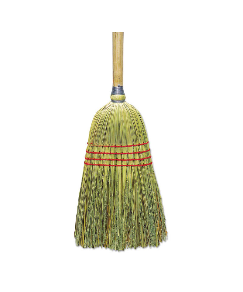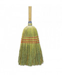 Economy and performance are hallmarks of this upright, corn fiber broom. Bound with double-stitched nylon cord for durability. Constructed with stiff, natural, corn fiber bristles that are tightly secured to the handle with a heavy, metal wire. Durable upright broom can tackle routine or heavy-duty cleaning jobs. An ideal, sturdy broom for sweeping concrete and other rough floor surfaces. Solid wood handle that's lacquered to prevent splintering and blistering. Four rows of stitching provide added strength and durability for lasting use.