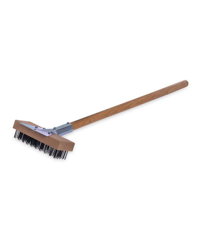High-strength metal bristles remove carbon deposits, rust, burned-on food buildup from high-temperature ovens and grills. Stainless steel scraper loosens debris for a deeper clean. Built to last even in busy kitchens. Finished with long, sturdy wood handle for increased reach.