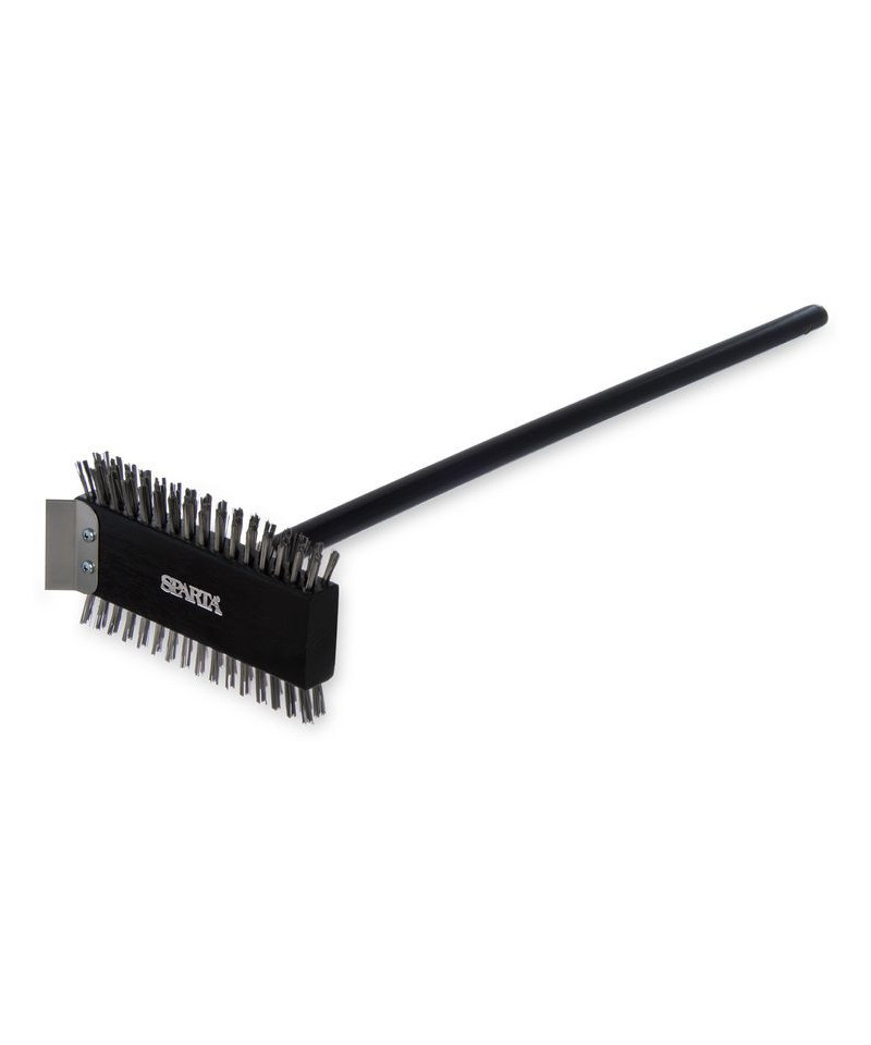 High-strength metal bristles remove carbon deposits, rust, burned-on food buildup from high-temperature ovens and grills. Stainless steel scraper loosens debris for a deeper clean. Built to last even in busy kitchens. Finished with long, sturdy wood handle for increased reach.