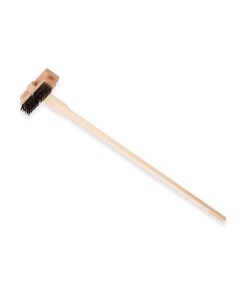 High-strength metal bristles remove carbon deposits, rust, burned-on food buildup from high-temperature ovens and grills. Stainless steel scraper loosens debris for a deeper clean. Built to last even in busy kitchens. Finished with long, sturdy wood handle for increased reach.