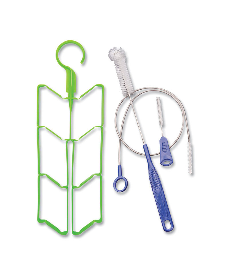 Compatible with all Chill-Its Hydration Packs and Replacement Bladders (sold separately). Kit includes separate cleaning brushes for the bladder, tube and bite-valve, as well as a drying rack.