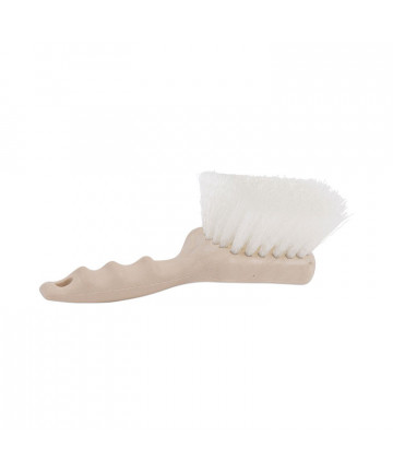 Dispense soap with a light push of a button with this OXO Good Grips soap brush. It provides more leverage for scrubbing and soap on demand. The contoured shape provides optimal comfort, and the durable nylon bristles are safe for nonstick cookware. This OXO Good Grips soap dispensing palm brush has a soft non-slip grip.