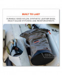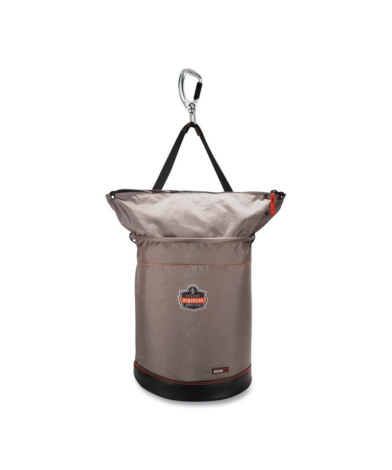The Arsenal 5976 XL Nylon Hoist Bucket Tool Bag is certified to the ANSI/ISEA 121-2018 dropped object prevention standard for safely hoisting, storing and accessing tools while working at heights. Made primarily of 1200D nylon plus an 840D nylon top, synthetic leather bottom and heavy-duty YKK zipper closure this hoist bucket is built for long-lasting durability. Unlike other tool buckets, it includes a built-in zippered top for ensuring tools do not spill out when at heights. In addition to the zippered closure, the top ring of the bucket is molded to maintain a wide opening for easy viewing and access to tools. An interior pocket is also included for tool organization. The high-tensile webbing handle is reinforced with leather and tarpaulin. This tool bucket is hoisted via a double action swiveling carabiner. Rigorously tested and approved to the ANSI/ISEA 121-2018 standard for dropped object prevention.