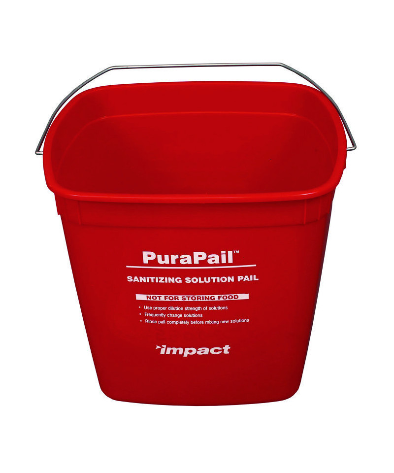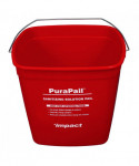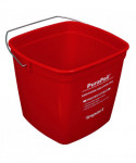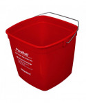 Utility bucket is color-coded to reduce the risk of contamination; red is used for sanitizing. Bucket also has front label imprint to help eliminate confusion between other cleaning containers. High density polyethylene with metal handle.