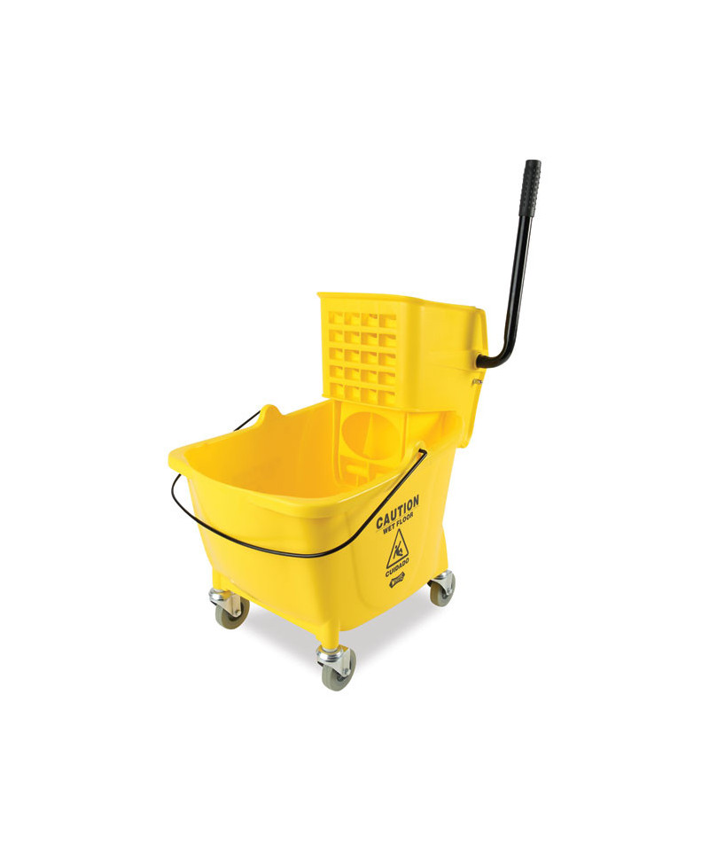Boardwalk® Pro-Pac™ Side-Squeeze Wringer/Bucket Combo is an ultra-durable combo bucket that features a reliable, professional-grade, leak resistant design. Foam-grip handle increases wringer-use comfort and stability. Equipped with four, durable, 3" swivel casters that enable easy maneuverability. Bright yellow color stands out when in high-traffic areas. Great for cleaning industrial restrooms, hallways, dining rooms, kitchens, lobby areas, and communal spaces. Compatible with most cotton and synthetic mops.