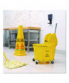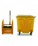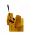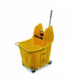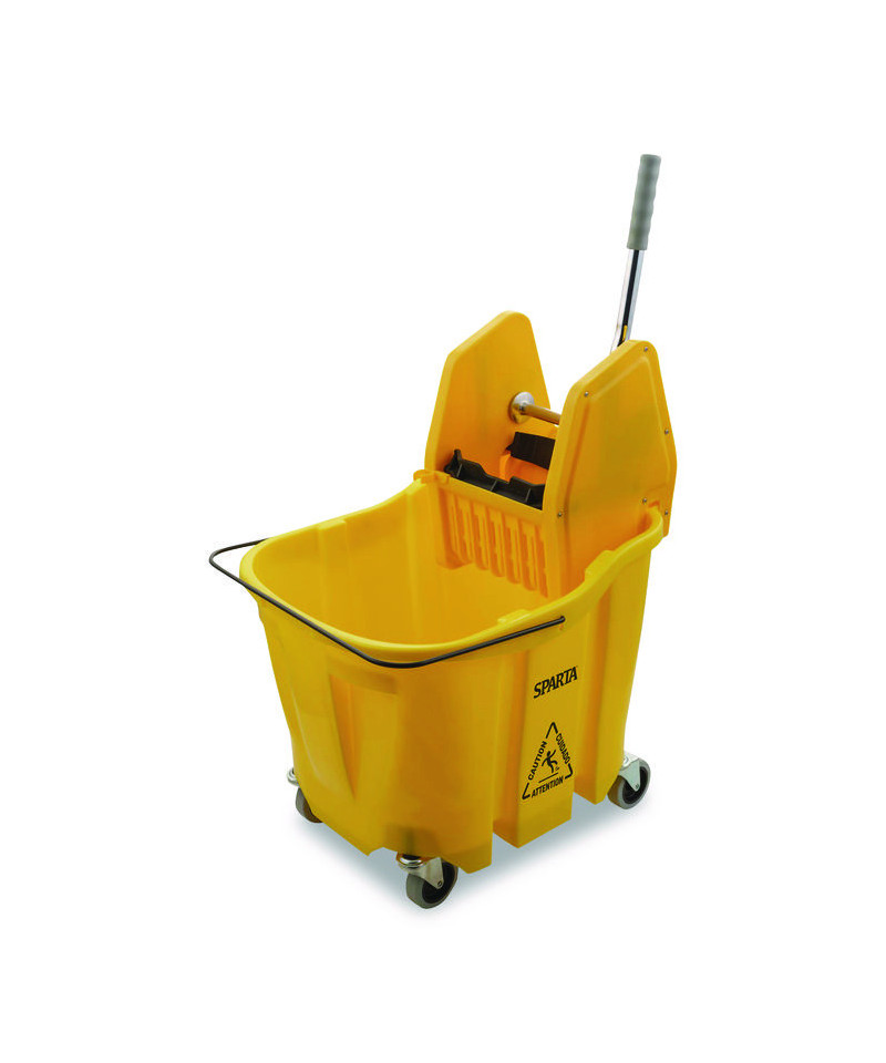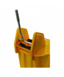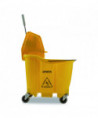 This handy mop bucket features sturdy construction and is made from corrosion-resistant polyethylene. It has a long-lasting consistent commercial use rating for thousands of cycles. Its anti-splash technology includes a wringer that pushes the mop down into the bucket to prevent any risk of splashes or spilling. The ergonomic handle makes it easy to move and press.