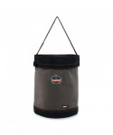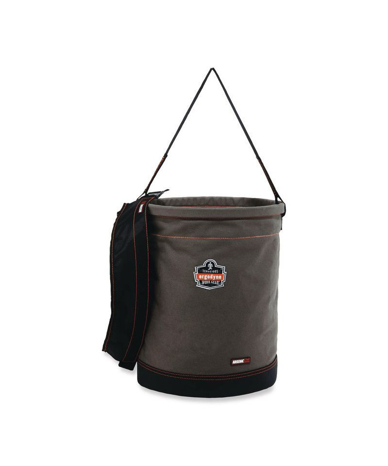 Extra-large durable 24 oz canvas main material, synthetic leather bottom bucket with storm drains. Webbing handle for strength and durability. Includes detachable safety top.